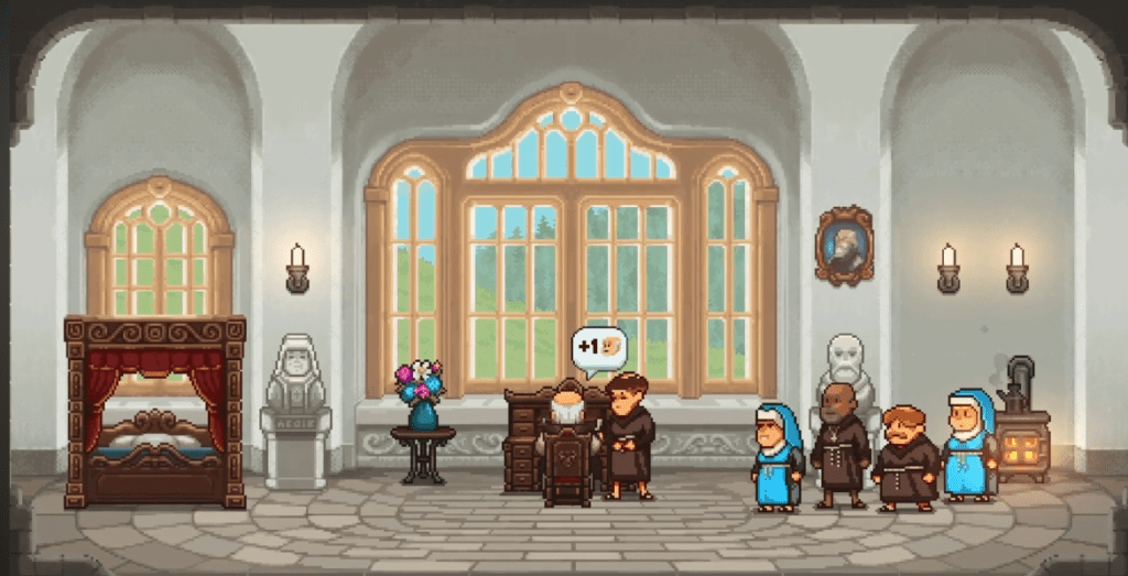 Não se deixe enganar pelo visual pixelado charmoso e colorido [01:09]. Por trás da estética acolhedora, existe um simulador de gestão punitivo e detalhado. Gerenciar os monges exige mais do que apenas mandá-los rezar. É necessário: